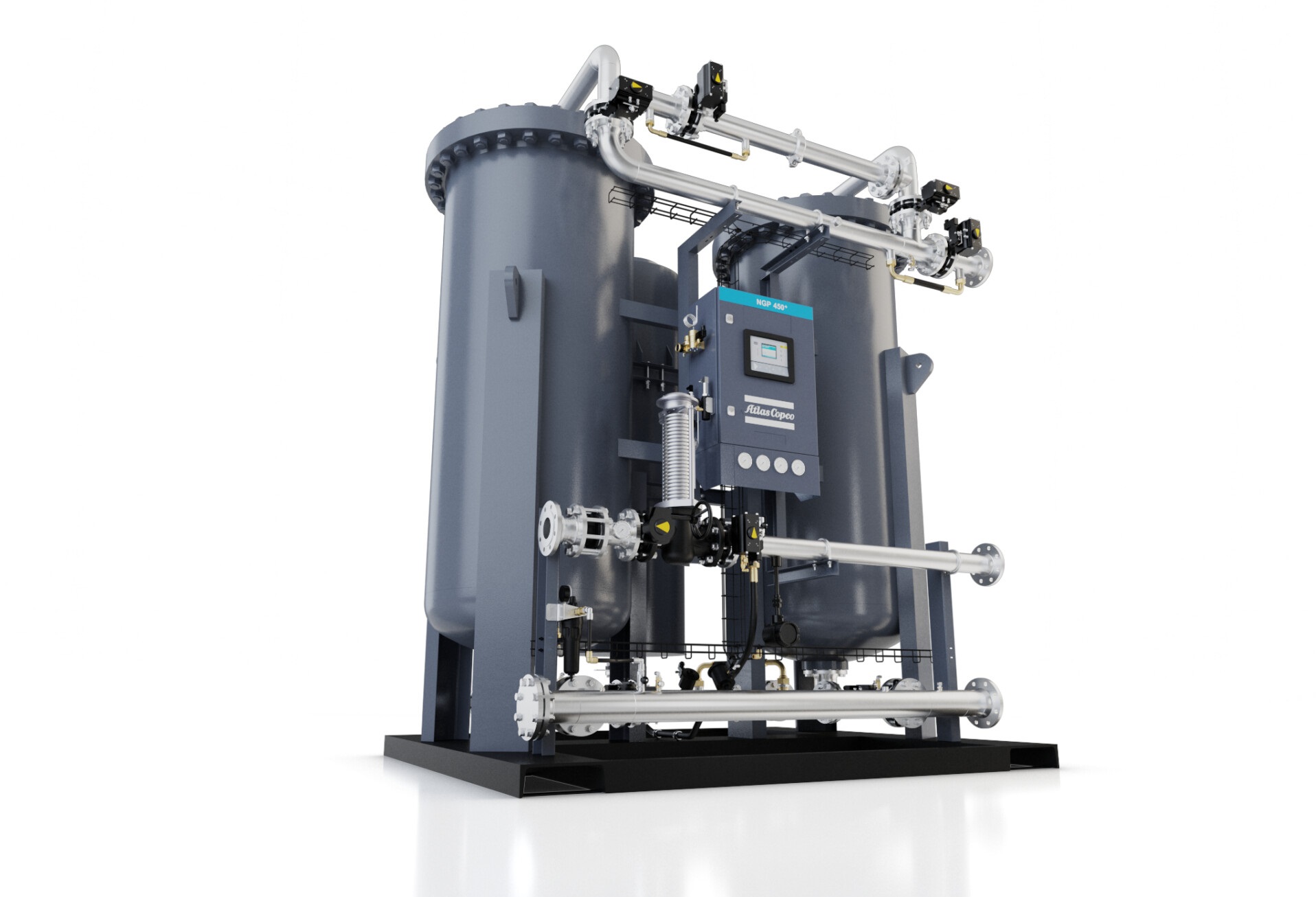 When your production requires high-quality, high-flow nitrogen, there is no better solution than the Atlas Copco NGP⁺ 450-2800. To ensure the integrity and continuity of your production, the NGP⁺ monitors the quality of your feed air and your gas output 24/7. Choose the NGP⁺’s superior efficiency to give you an industry-leading combination of peace of mind and the lowest cost of ownership.